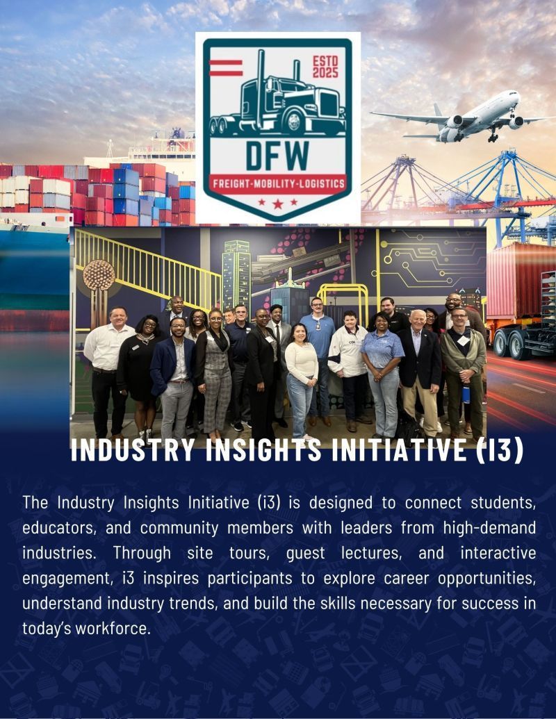 Industry Insights Initiative (i3)is designed to connect students, educators and community members with leaders from high-demand industries. Through site tours, guest lectures and interactive engagement, i3 inspires participants to explore career opportunities, understand industry trends and build the skills necessary for success in today's workforce.